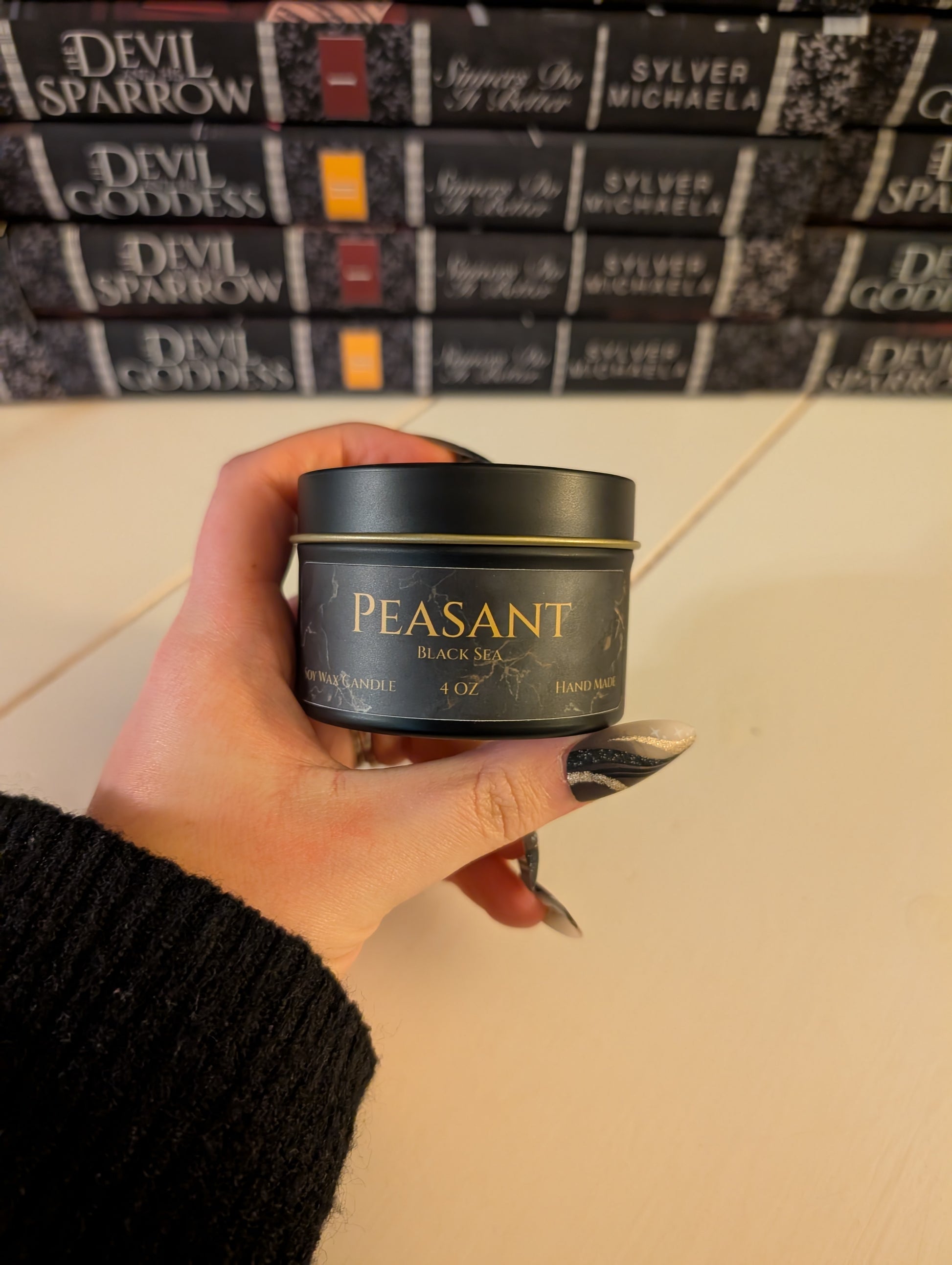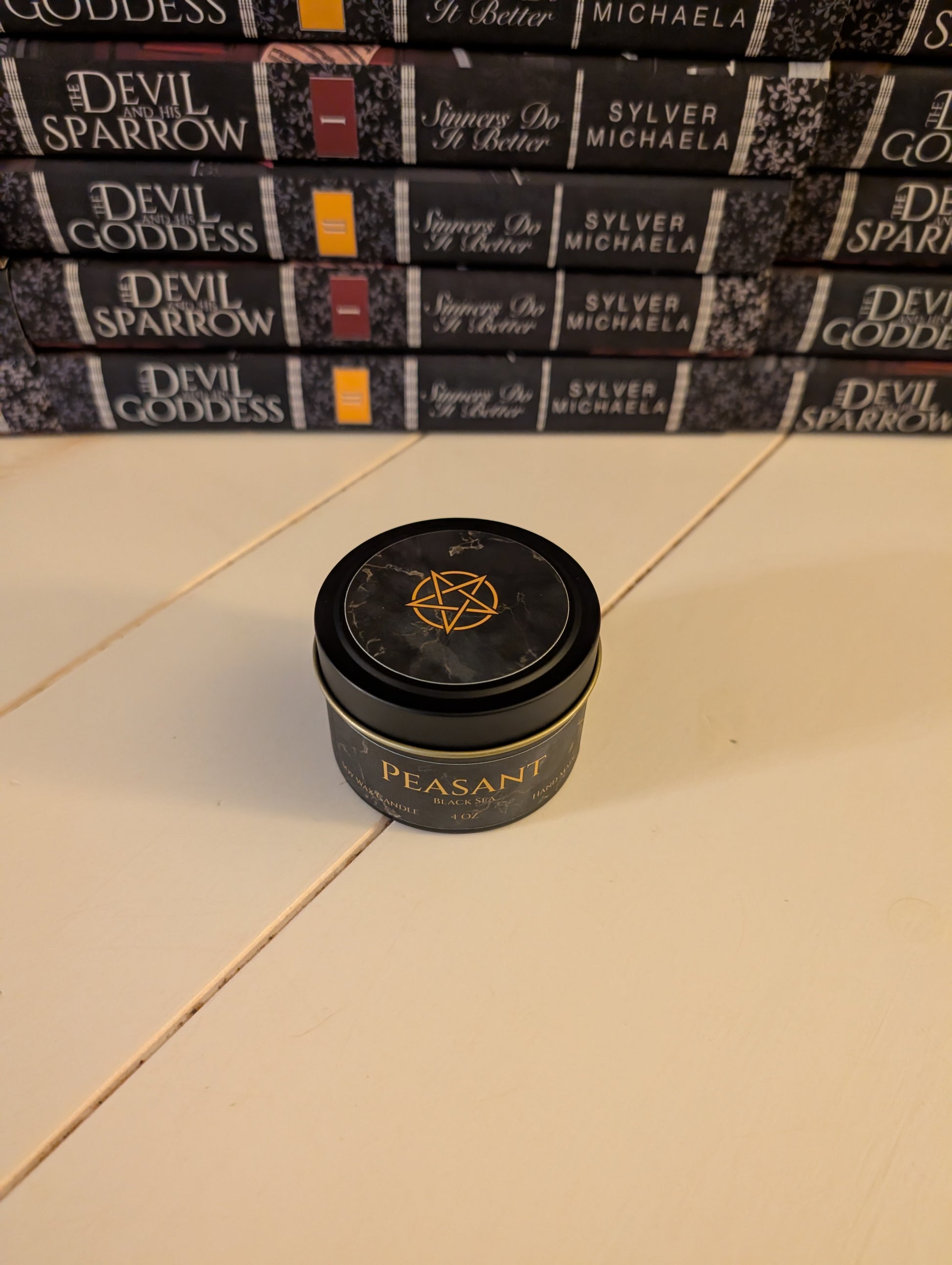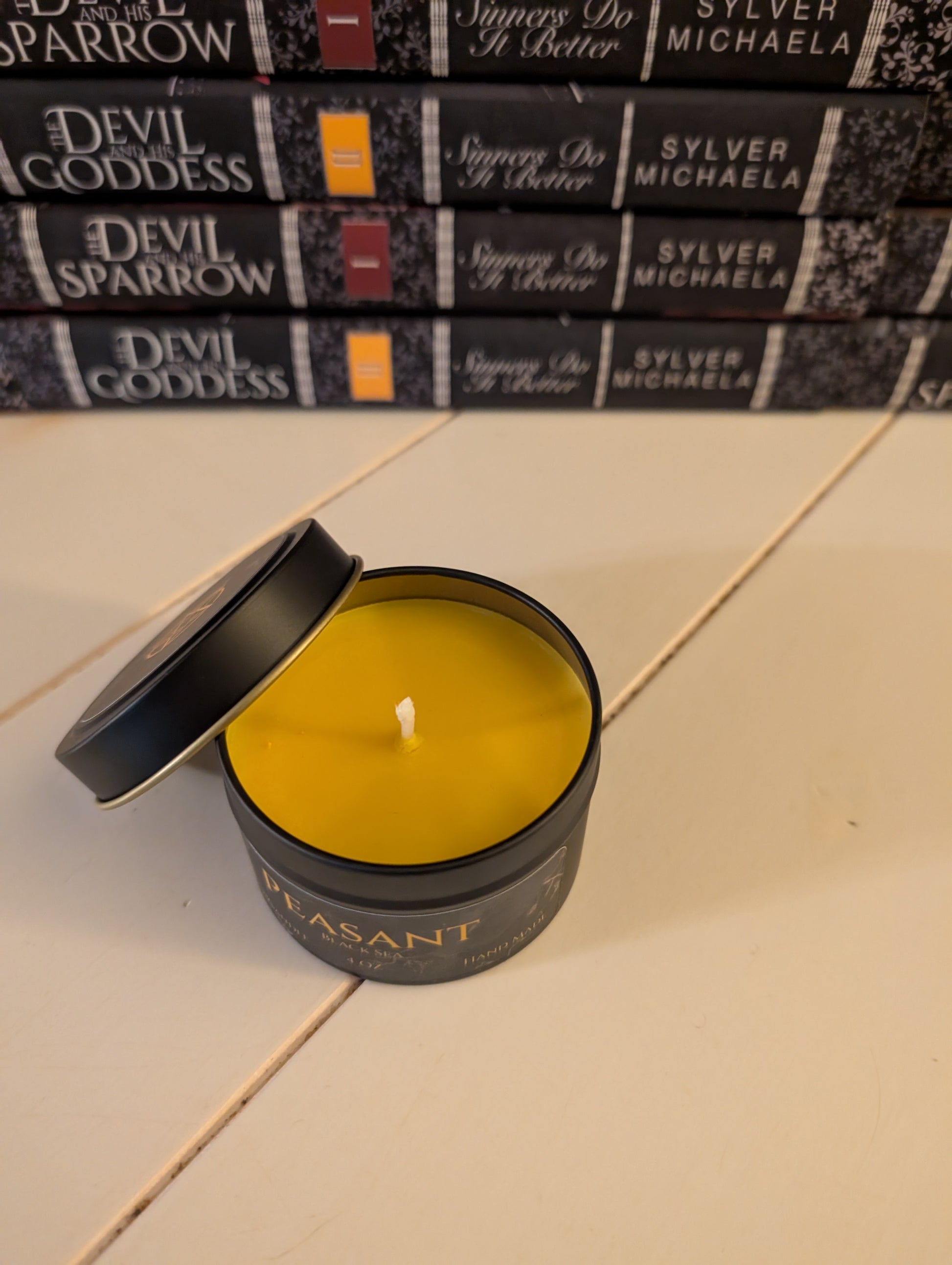 This is a hand made 4oz soy wax candle for Perseus, the MMC from The Devil and His Goddess. It is Black Sea scented, which is petitgrain, ozone, sea salt, plum, eucalyptus, powder, sandalwood, and dark musk.