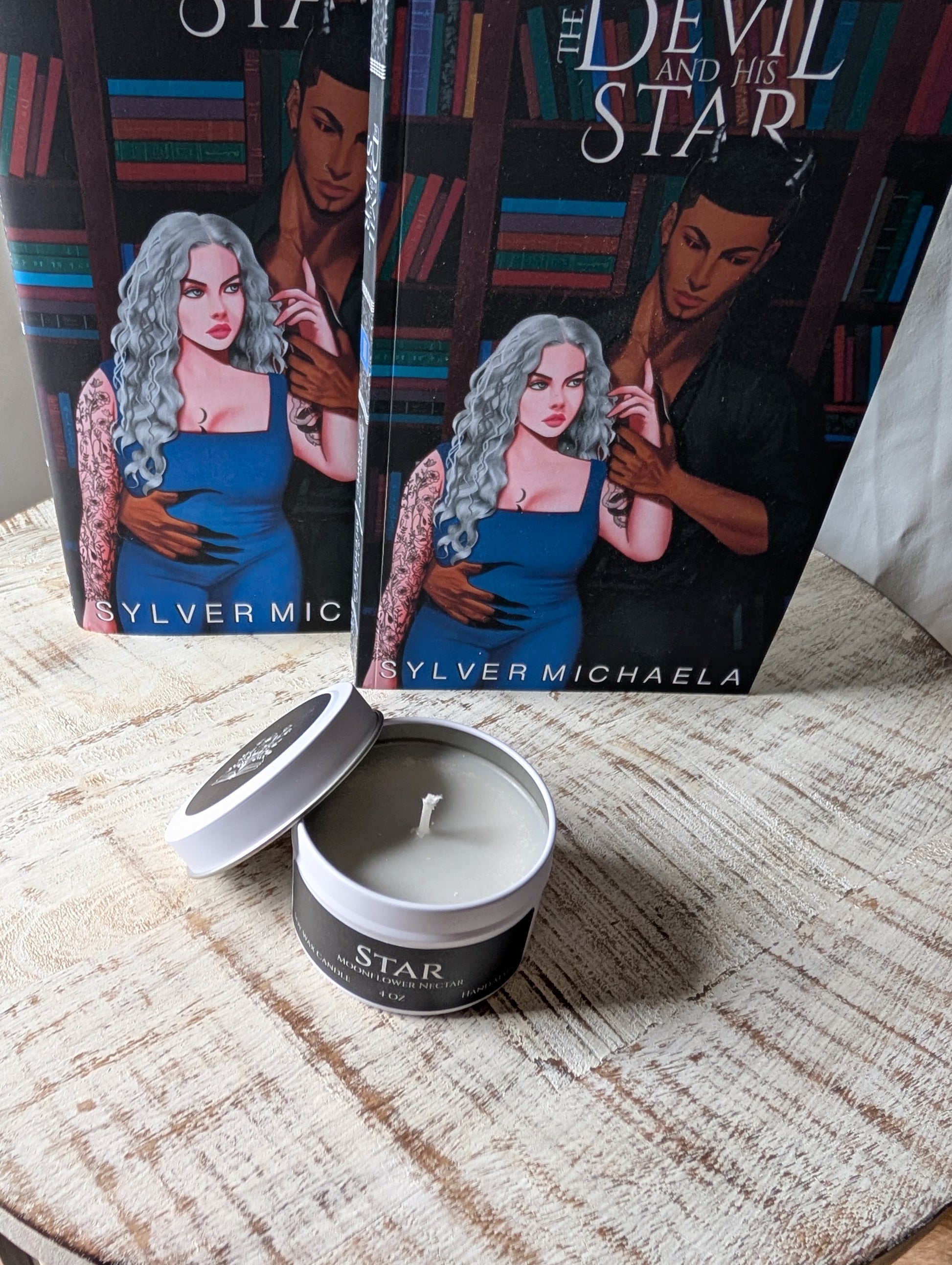 This is a hand made 4oz soy wax candle for Serenity, the FMC from The Devil and His Star. It is Moonflower Nectar scented, which is pear, agave, rose, marine, cherry blossom, powder, dark musk, and amber.
